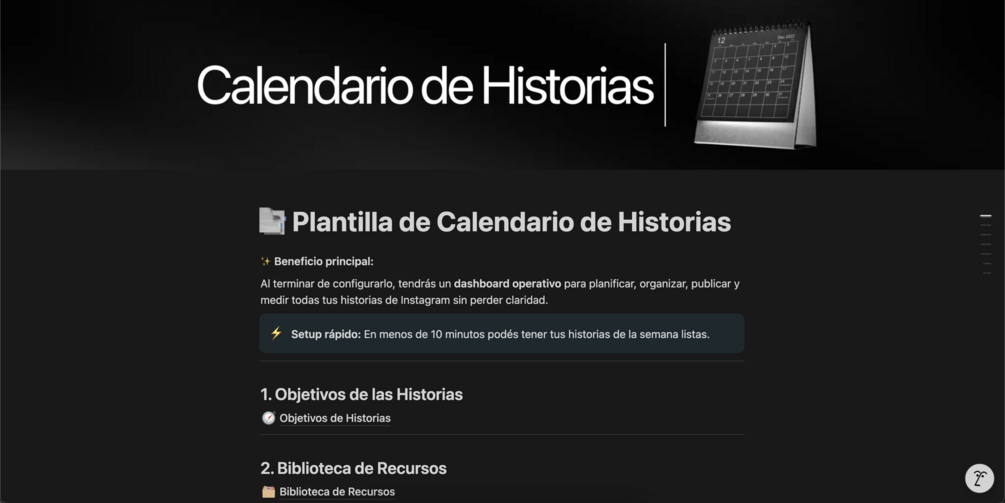 Con este hub en Notion vas a tener un sistema simple y listo para usar que convierte tus historias en un canal de ventas real.